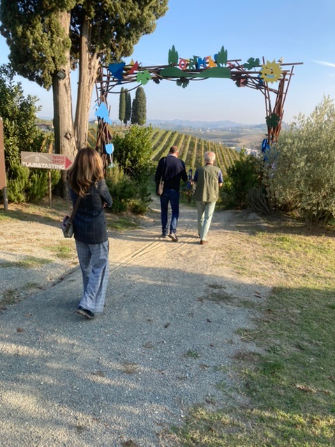 He also took us on a fantastic visit to La Corte – one of his vineyards which is a 22 hectare single piece of land part of which he has equipped for entertaining and hosting events. There’s a building still awaiting renovation but the gatherings have been frequent since 2013, incorporating a specially built viewing tower, and making use of the vineyard – with its fabulous views – as an outdoor art gallery
