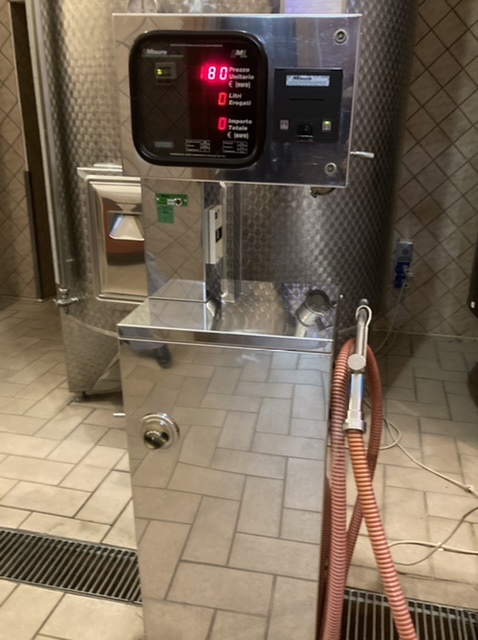 Today Valentina, who had organised these visits drove us to the Cantina di Nizza, a huge cooperative whose customers are both local and international.The ‘sfuso’ sales are still an important part of business, and the pumps immediately put me in mind of the UK’s parlous state over petrol delivery. (These look like across between a Dalek and a petrol pump)