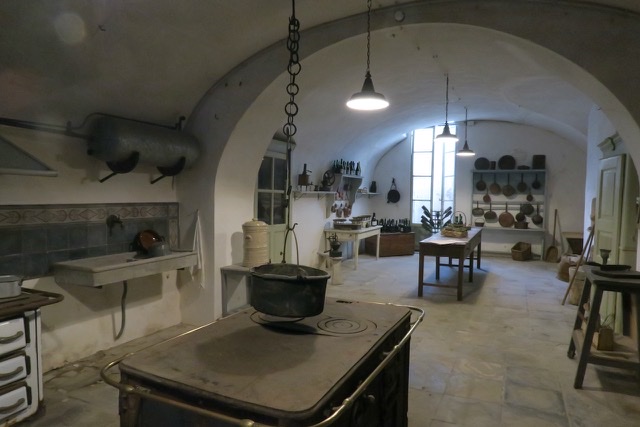 Mario explained the estate’s history as we walked through its magnificent gardens, showing us the fine house of the historic Marchesi, now the property of a different family of three sisters and their adult children, some of whom we met. (They reminded me of a chance meeting with minor English aristocracy at Cranborne in Wiltshire – all very tall, and speaking excellent, slightly mannered English). We also went ‘downstairs’ to see the original kitchens and central heating system – a wood burning stove whose hot air was piped around the mansion!