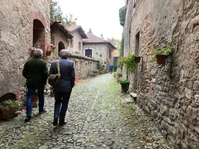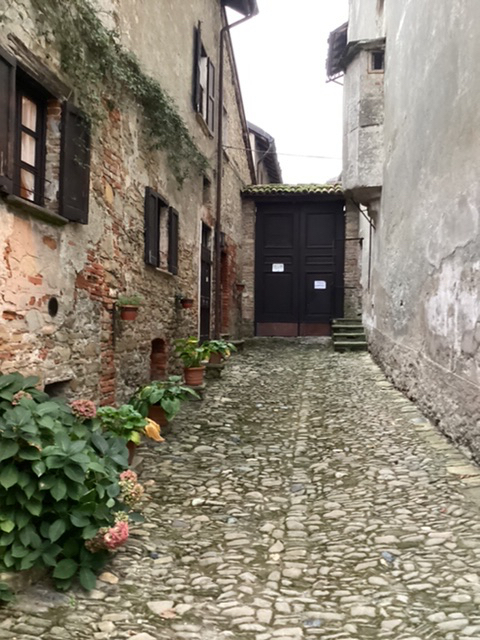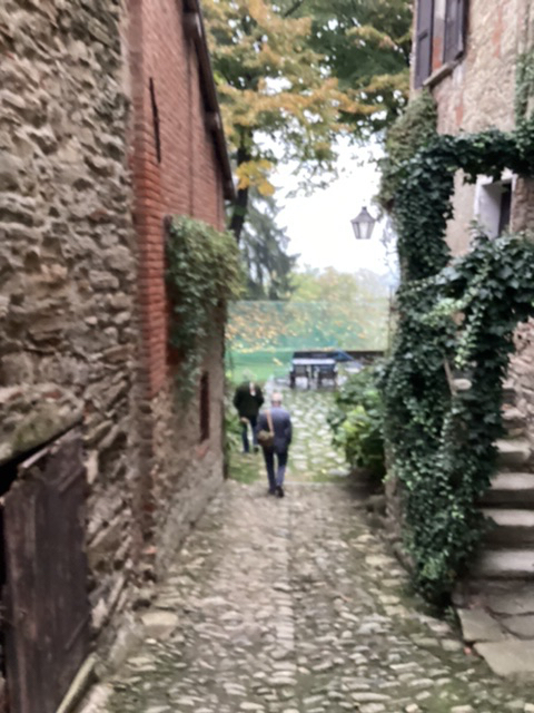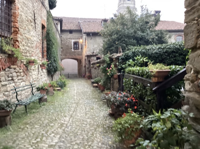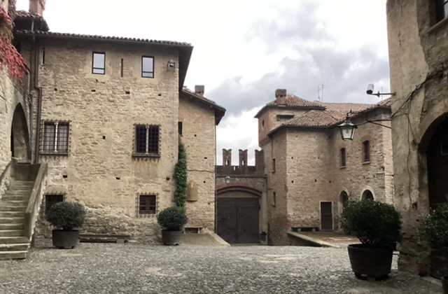 We arrived here in the gathering gloom to discover a complete borgo (little collection of homes and outhouses) clustered around the enormous and elaborate castle. Once upon a time there had been a moat, a portcullis, and a drawbridge…