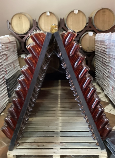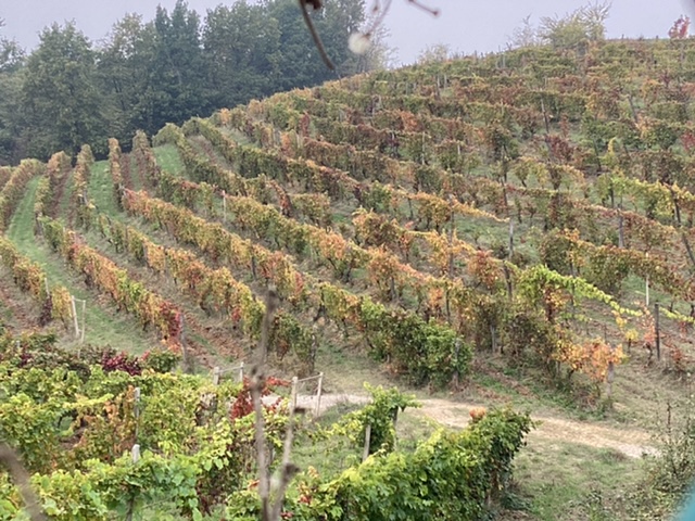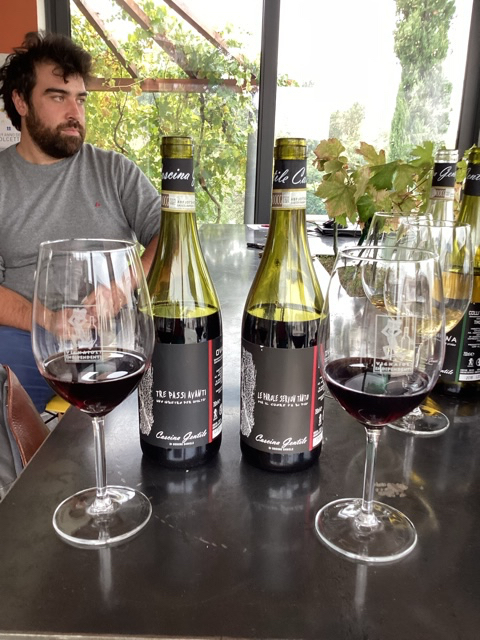 We drove south towards Ovada once more and onto the other side of the river, to Tenuta da Gaggino, the latest winners of Tre Bicchieri 2022 with Convivio 2018; a friendly proprietor – Gabriele Gaggino and a warm, knowledgeable wife – Tiziana Zago, whose success is founded on a good soil and a lot of hectares and with whom we tasted in their working office. I managed to hide the bottle opener under my bag. (That there seemed to be only one in a winery struck me as odd.. )