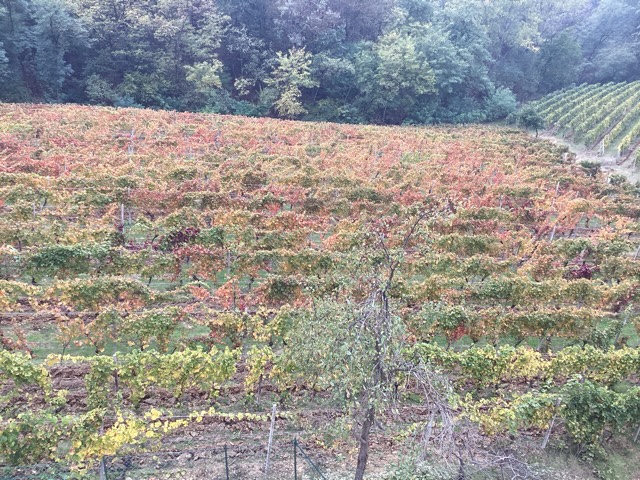 And finally to taste in his cosy but very attractive tasting room heated by a wood stove, not pellets, with Bonsai-ed vines indoors and great views to taste Gavi, Timorasso and Dolcetti…