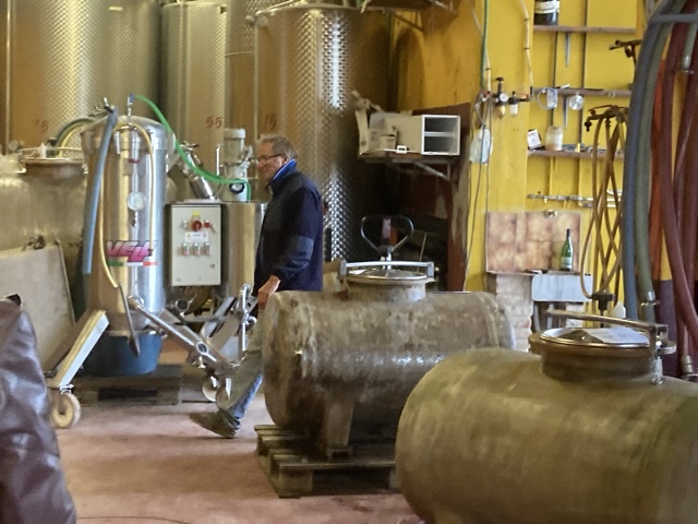 His manner with employees in the Cantina seemed abrupt and even harsh; he is not a man to delegate easily. We tasted from fermentation tanks at various stages of the process, as he strode around checking on his workmen’s progress.
