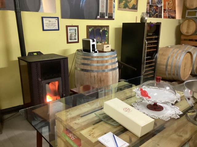 Luigi of Boveri Luigi was waiting for us at 15.00, after a slow but straight forward journey through the interior of the southern section of the hills to the north of the territory, to near yesterday’s meeting with Chiara at Oltretorrente. The nebbia (fog) had lifted a little but it was a damp afternoon and the stove was a welcome sight inside the cantina.