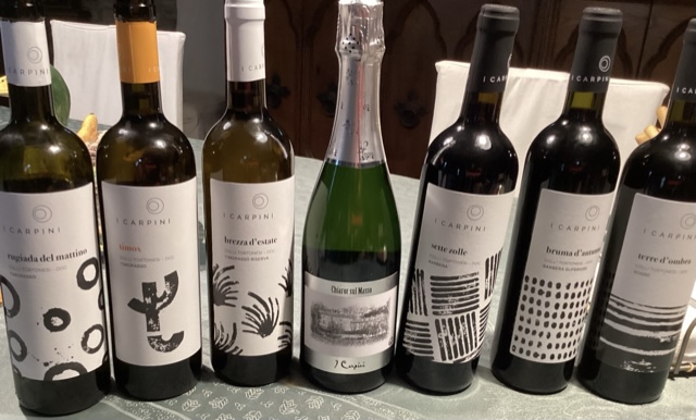 I thought his Brezza D’Estate – still – and Chiaror sul Massi – sparkling – are the most delicious! I Sette Zolle (seven sods or chods) is their best seller, made from Barbera grown in the first vineyard planted in front of the house. It is held for four years in tank; then four years in bottle before dispatch. As I said – lots of waiting!