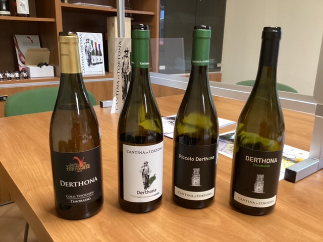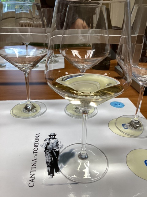 After Vigneti Massa the visit to the cooperative Cantina di Tortona was a very different experience! The team made us welcome, a little unsure about speaking English, and were visibly relieved when we replied in Italian. They sat on one side of the large table divided by a very tall perspex screen, and we on the other, tasting their considerable range of wines, and listening to the their account of the Cantina’s history