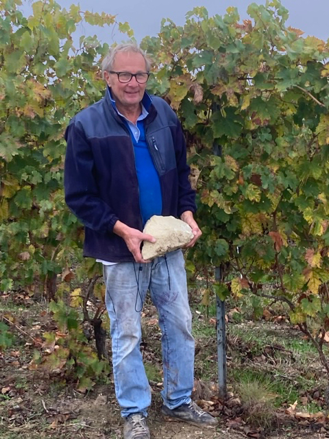 We have learned that Timorraso is a dense plant with second shoots everywhere (hence Walter Massa’s assault on a wayward stem) which need regular thinning in order to create space and good air flow; it also needs a good exposure, good drainage and plenty of sun. Not overly fussy then!! Here the soils are 30 % clay, and the rest is limo (limestone) and gypsum.