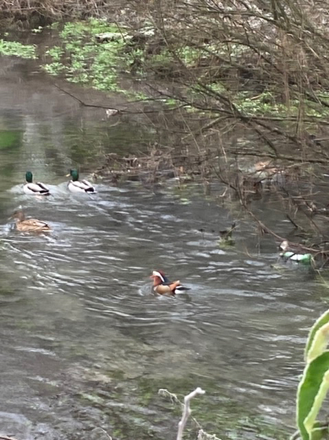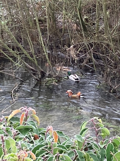 Done books, poems, trees, places, people… music I’ll save til next week when I’ll be better informed. What about birds I hear you say? Well – this week’s little comedian certainly cheered some of us up – pretending to be a mallard? A solitary Mandarin duck, looking for friendship….