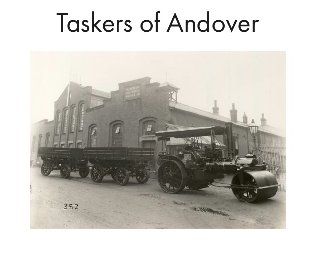 Few clues remain of Taskers Ironworks, which over a period of 170 years produced metal implements (starting with a special plough designed for use on chalk) farm machinery, steam engines (the Little Giant shown was built in 1902) and iron bridges (of which two remain in and around Andover – that by Fishing Cottage in Clatford; the other (shown below) carrying Ladies’ Walk over the old Micheldever Road, which until 1851, was the route to the nearest railway station, 12 miles away at Micheldever. And in 1938, Taskers took only ten days to produce a prototype of a trailer big enough to carry military aircraft – and won the government contract with their ‘Queen Mary’