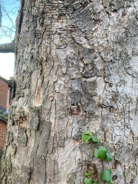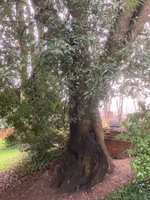 On the last day of the old year, I had walked past a most beautiful specimen in the very centre of old Andover. I had never noticed this tree before. Its glossy dark green leaves, some with spikey edges, others not; its striking bark and its generous spread and stature gladdened the heart.