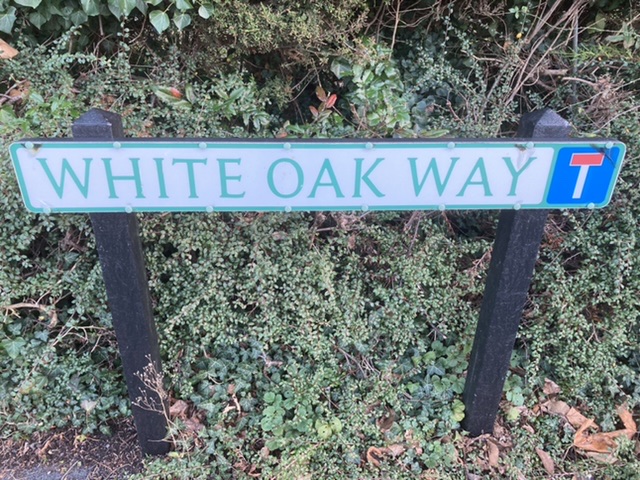 While exploring Anna Valley I came on a cul-de-sac called White Oak Way, and with some excitement walked towards a row of three imposing well-established trees in this little newish estate on the slopes of Bury Hill. White Oak is a native of North America, and a valuable wood.