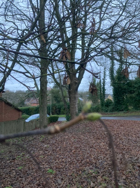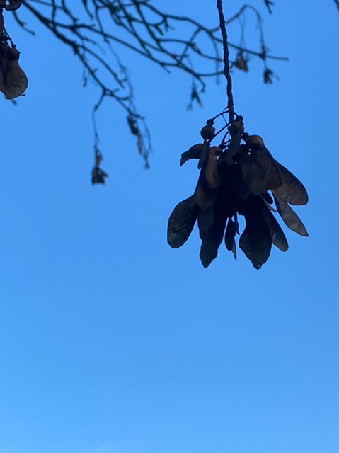 Had it once been planted here? Unlikely; its preferred soil is acidic, not chalk.. The trees are not oak, I was sure… but I struggled (again) with their identification. I wanted them to be Norwegian Maples, at least – for their slimness. But I fear they are straggly examples of tree number two: Sycamores – the green buds gave it away, the leaf shape, the seed flights, and the bark. Hey ho.