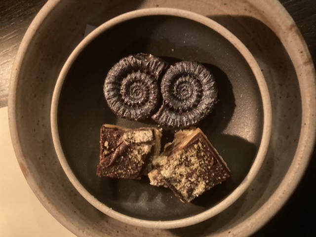 Her training involved an internship with Noma, in Denmark, where she started not at the coal face but on the forest floor, foraging for hours on end to find unusual and never commercial flavours and produce. Today she uses several types of seaweed, gathered locally; funghi, wild garlic and rhubarb in her suite of dishes, accompanied by pairings with wines and alcoholic drinks made on the premises. There are only 24 covers; four women in the kitchen, and three more front of house.