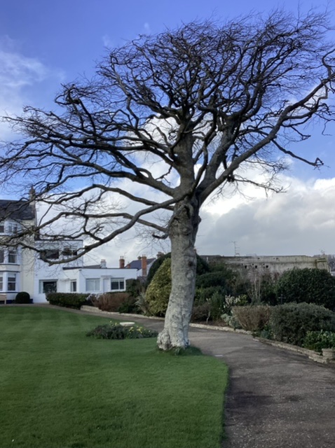 Storm Eunice hove into view on what should have been our final day. It was clear from the Red Alert that travel was unwise; and had we delayed, our journey would have taken us into the next Red Alert over SE England. Fortunately the hotel had capacity for us to stay for another night, and we hunkered down. Just as well! Our car was parked up the hill in the car park which made the national news, fortunately at some distance from the handsome, large pine that we had admired on our arrival…