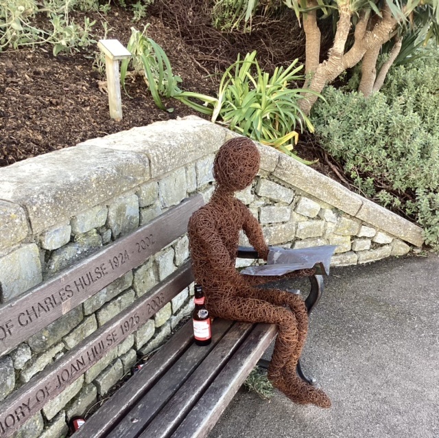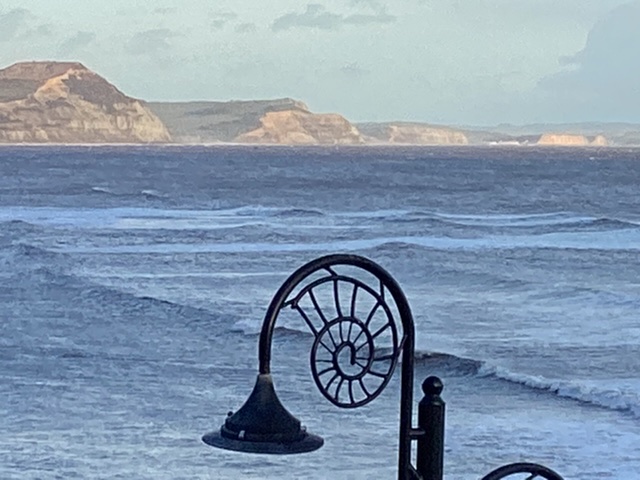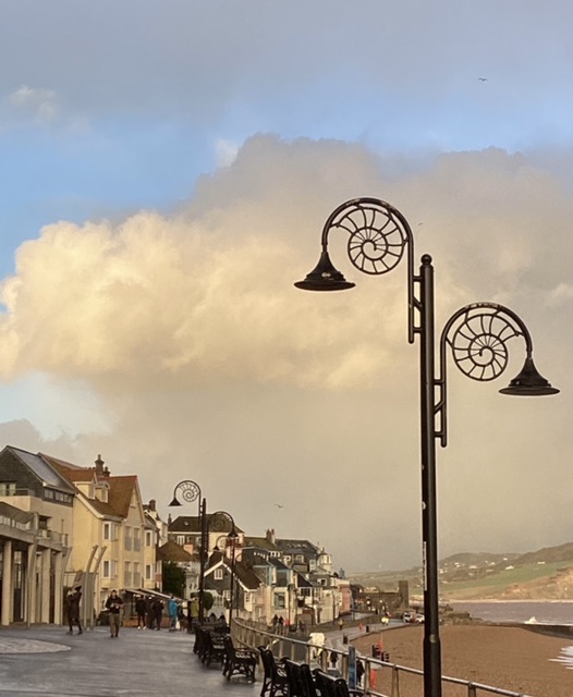 I was taken with the art work, benches, plantings and general celebration of the richness of being human in Lyme – especially grateful in a gale force wind for the decorated but essentially concrete bench, of which more later..