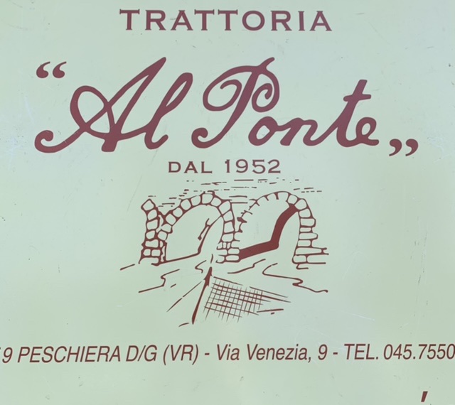 We really enjoyed not being in expensive Verona this time, and ate well in two Peschiera ristoranti : Il Gabbiono Locanda di Maria (twice) and the Ristorante Inchiostro (the last night). Both excellent; the latter more adventurous. Special mention should go to Al Ponte Trattoria where two family members served perhaps 30 covers with hyper-efficiency and great food, value for money, and speed.