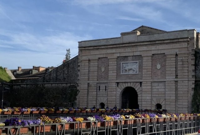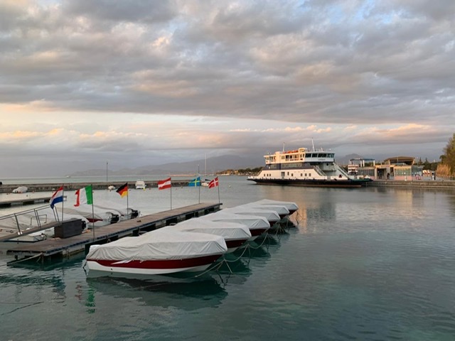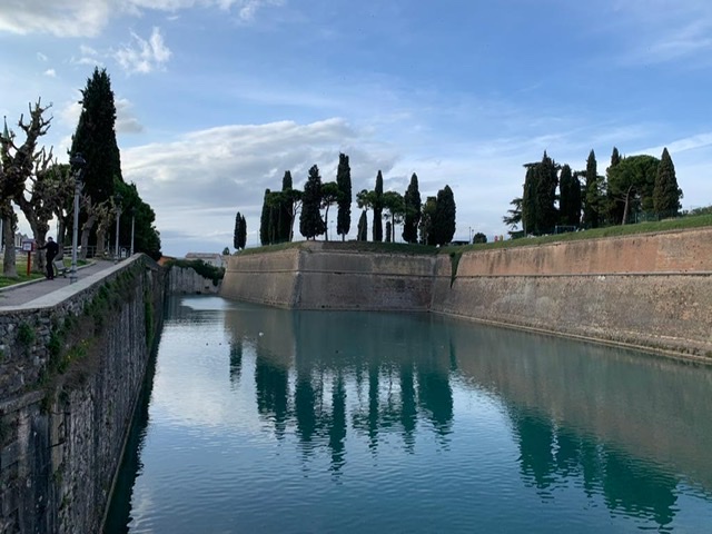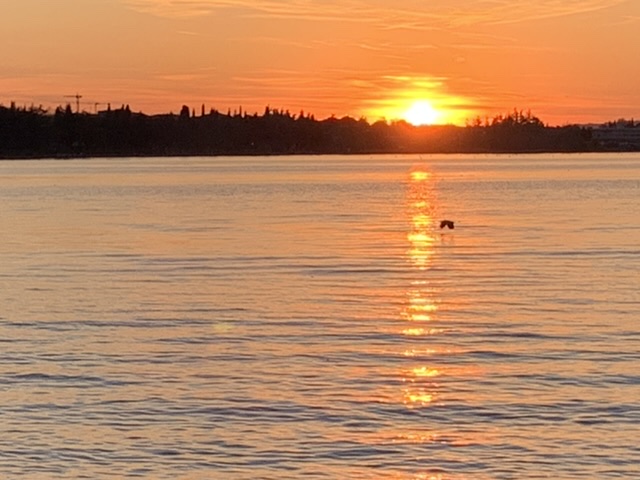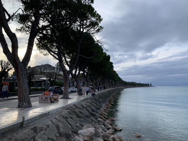 Still feeling a tad fragile after the covid fatigue, we cut some slack with a taxi (45 euros) to the Garden Hotel in Peschiera, in time for a stroll along the avenue next to the lake shore. We managed an aperitivo before supper as the sun set on a very tranquil lake in this hospitable town at the foot of Lake Garda, once a garrison town but now a tourist hub for ordinary italian families.