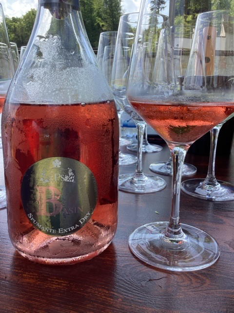 We tasted Basin, a spumanti extra dry; then a rosato with a splash of Merlot which was mainly Nebbiolo; and a white made from Chardonnay for a neighbouring restaurant called Stella…