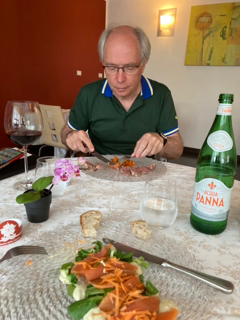 Luca’s wife joined us back at the offices, and the conversation continued until after 20.00. We returned to Gattinara to the ristorante near the hotel (ristorante Villa Paolotti) for a supper (a rabbit starter among other things) and a pleasant local Rosato, though compromised by a loud table of four one of whom spent half an hour telling us all why she didn’t like Germans. Guten Nacht!