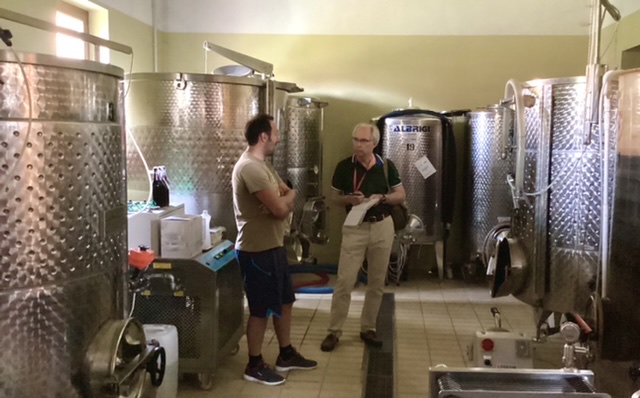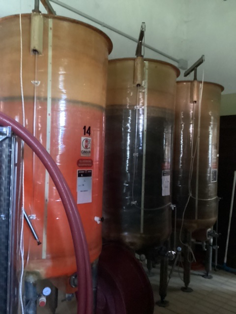 At 16.30 we arrived at Davide Carlone Grinasco Via M. Sagliaschi in the Frazione Torche whose cantiniere was locking up as we arrived. Fortunately he phoned Davide, who was occupied elsewhere. Soon after his sister arrived from the house alongside and we tasted with her from the tanks. Davide is busy reinstating a huge vineyard at the top of the hill we passed as we came in on the newly restored road from Boca. The huge earth-moving machinery on such steep slopes looked terrifying !