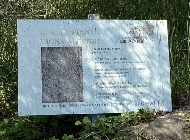 Onto le Piane at Piazza G. Matteotti 2 in Boca for 14.30 to meet Christoph whom we had met at VInItaly. He showed us the fascinating Maggiorina training system, used since Roman times. Now posts replace the trees but are still referred to as arbori morti