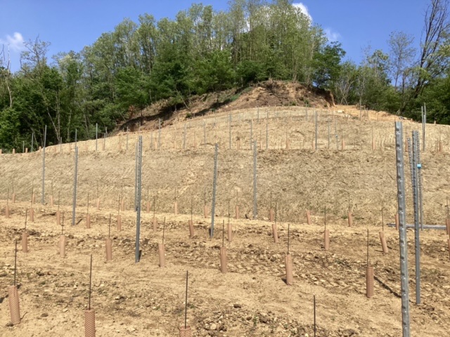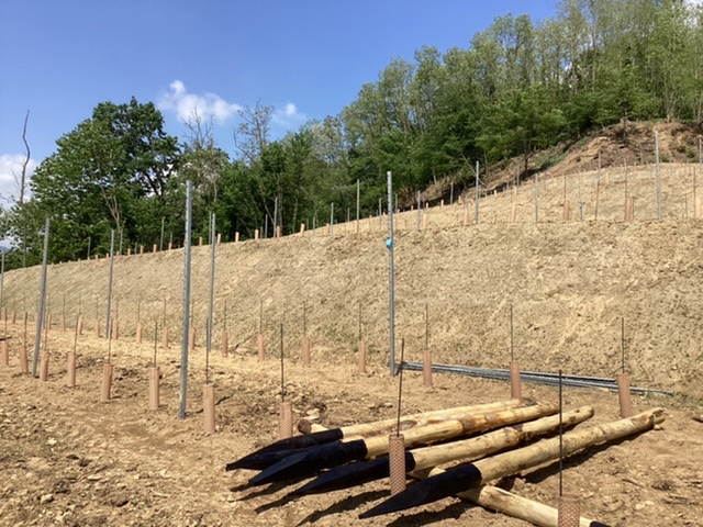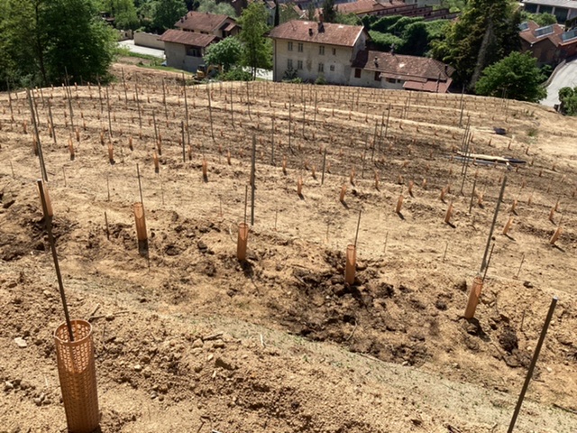 The tiny steep terraced vineyards were abandoned for the factories, but Davide has finally persuaded 10 separate owners of the tiny hill behind the house to sell him the land, which he has cleared and terraced, and begun planting. The sandy soil is very special, and unusual, and deep.
