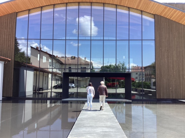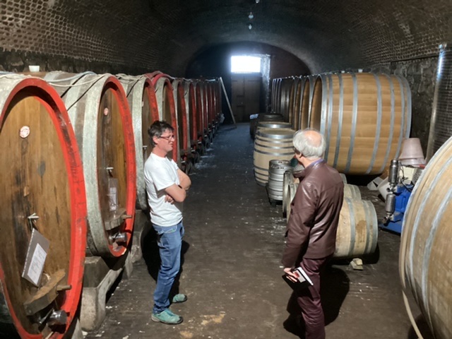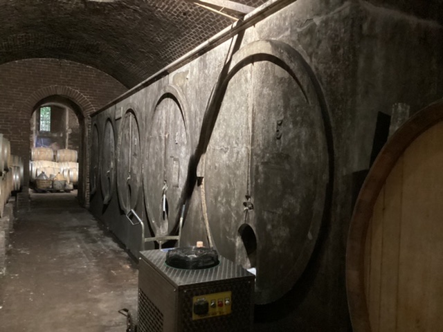 The photos say it all! The newish project of Roberto Conterno is all glass and space and vast numbers of fermentation cylinders and beneath, huge botti. Nervi had several episodes of bad luck through the C20 and eventually Conterno acquired the company in 2018, and has completely reconstructed the old cellar, now a classy ristorante, and built this vast statement. His personal assistant in Gattinare showed us round; she warmed up quickly when we recounted our meeting with Roberto last Autumn in Monforte, and explained her role and relationship with the business.