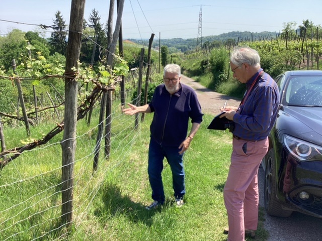 A quick visit was spontaneously arranged by Marie Elena to one of her friends, Paolo Cominoli at Cantina Comero just round the corner, whose parents were astonished at our arrival, but he was delightful and helpful. Formerly a farm with milk cows and cereals, (the former finished off by a lightning strike) since 2009 he has been making wine in Sizzano after university in Milan, both for himself and for others, as well as working in the summer in Conegliano. His Nonna helped him at the start, even in the vineyards.
