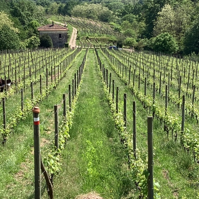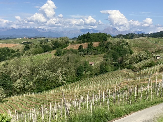 Distances this week were modest and thanks to Lorella the programme was efficient and less demanding. She drove us up to the castello to the NNW of Gattinara, passing a very steep vineyard as she explained the lie of the land.