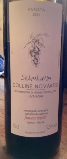 A quick tour of the cellars, concrete and tonneaux, followed by a tasting therein. These wines are Vini Novaresi: Mottobello – Erbaluce 2020, 13.5%, followed by Selvalunga – 100% Uva Rara 2021 12.5% – very drinkable and characteristic of the territory, and to Francesco’s surprise, sought after, along with Vespolina, in the USA, in UK via UltraVino. Maria, the name of Francesco’s youngest child, is a Vespolina, 100% 2020. A very popular drink in bars these days…the cantina smells of green peppers and cinnamon when it ferments.