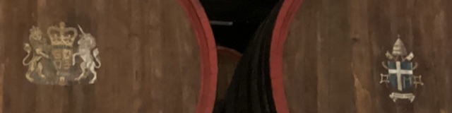 I was surprised to see the coats of arms of both the pope and English crown, embossed on huge botti.