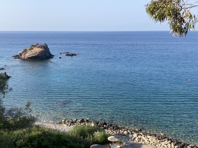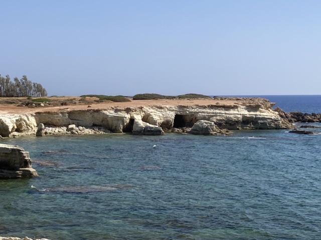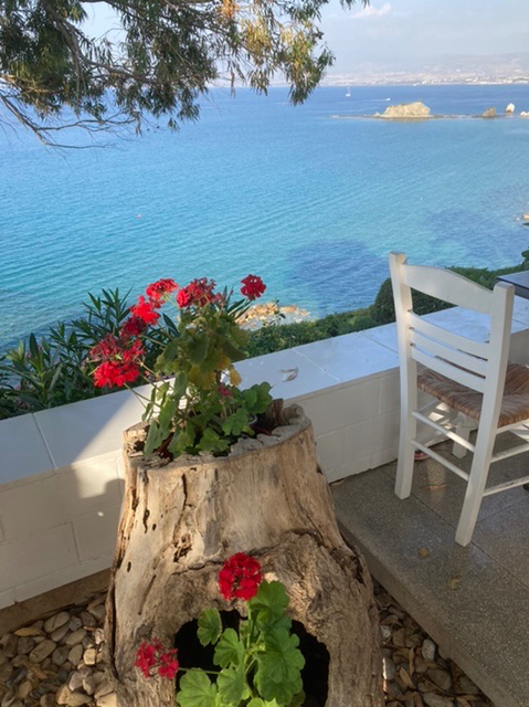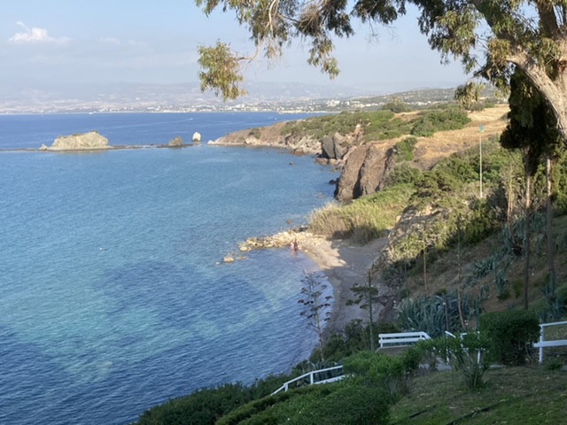 On our final evening David and I drove towards Polis to the north and on to Lakki on Chrysohou Bay and the so-called Baths of Aphrodite. Even at 18.00 Lakki’s concrete harbour was impossibly hot, encircled by restaurants and cafes, all touting for trade. We drove on and found a homely cafe overlooking the rocks of Aphrodite’s Baths to enjoy a quiet cool drink to the sound of the sea.