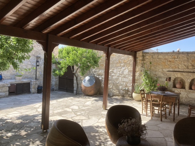The drive the next very hot day in the Troodos foothills was dominated by the harshness of a landscape still not recovered from last year’s wild fires. We stayed two nights in Koilani, a small community bereft of younger people, and despite running water and electricity the dilapidated stone houses looked as they have for centuries, some slowly disintegrating, others transformed internally into very sophisticated holiday lets, like ours, the Stone House, below