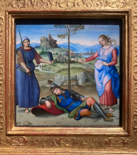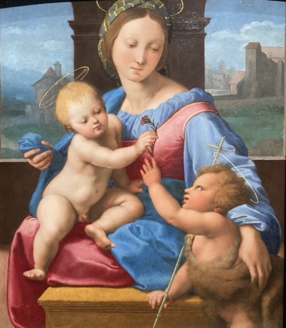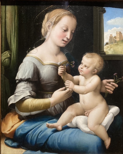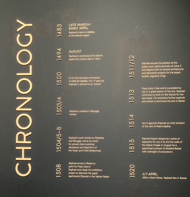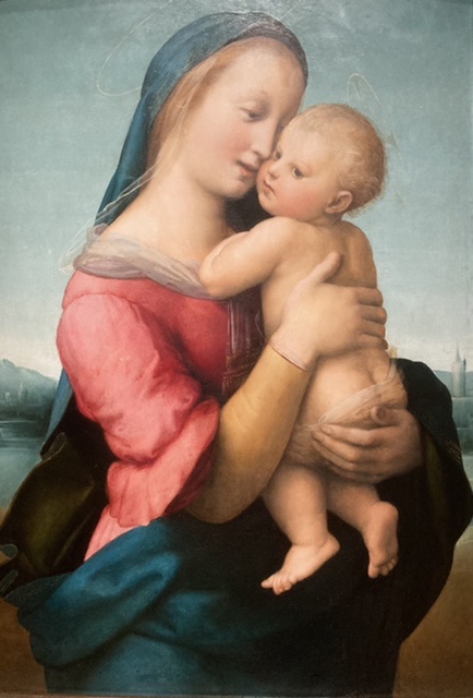 Raphael’s work is astonishing! Born in 1483 in the Marche (possibly Urbino) to a court painter at the Dukes of Urbino, he lost his mother when he was 8 and his father at 11, but supported by an uncle, he took over the family workshop and by 15 he was acknowledged in Perugia as a skilful draughtsman and gifted painter.