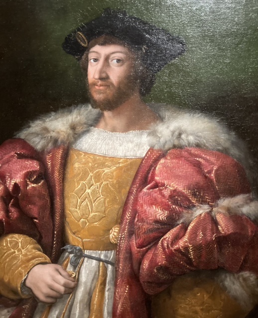 These paintings date from 1517 and 1520, and indicate his eclectic interests – and friends…. The Standing Female Nude was perhaps drawn from life in 1517 or 18, in preparation for a fresco version of Psyche; by contrast the over-dressed guy is Lorenzo, Duke of Urbino, pope Leo’s nephew. Baldassare Castiglione follows, with his bright blue eyes, author of the Book of the Courtier (1528)who aimed to epitomise a Renaissance gentleman, with his impeccable but tastefully understated dress. There’s a brilliant painting self portrait with the stunningly handsome Guilio Romano, his principal assistant.