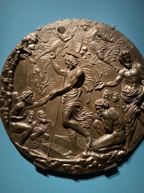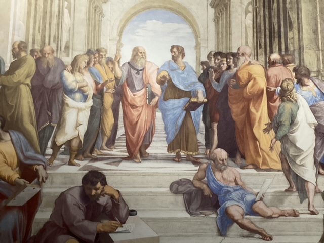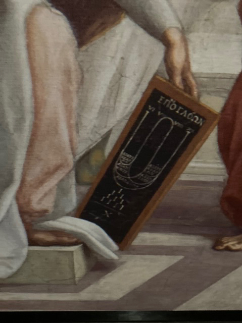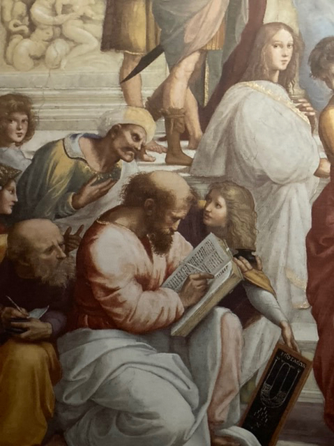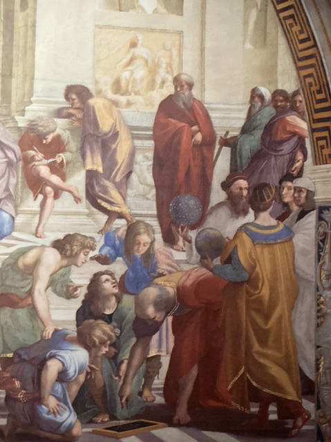 The National Gallery reproduced full scale the huge School of Athens fresco from the Stanza della Segnatura of the Vatican Palace and exhibited at eye level. To be so close to this tremendous piece was breath-taking; the detail, the expression by the individuals portrayed of Aristotelian interest in the natural world and human activity, and the Platonic abstraction and idealism was laid out before us. What a talent Raphael had!