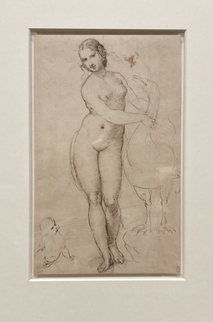 The tiny panel An Allegory: Vision of a Knight was painted in oil on poplar when he was perhaps 21. Virtue and Vice present as complementary rather than conflictual! The ink over black chalk of Leda and the Swan is dated c 1506, and the serious young man is considered a self portrait from 1506. He was 22.