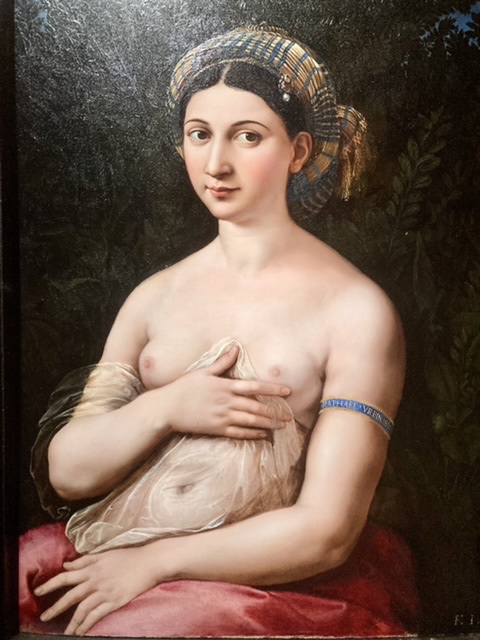 And finally La Fornarina…. On whose left arm Raphael left his name – in capital letters!