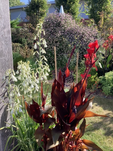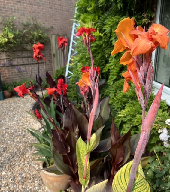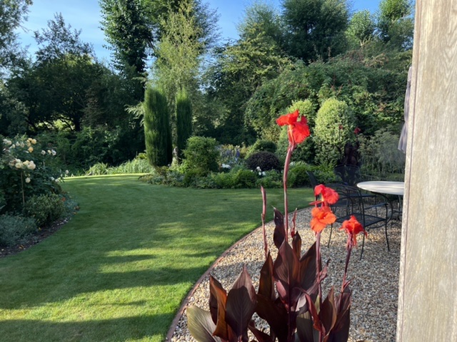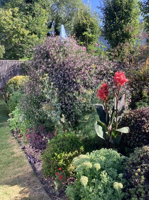 Souther Water inevitably imposed a hosepipe ban, though ours were put to use siphoning water from the bath onto suffering flowerbeds and roses. Look carefully at the side of the house! Roses, Dahlias, Clematis, Cannas , Agapanthus all survived – though it was too hot to sit out – shade was in short supply