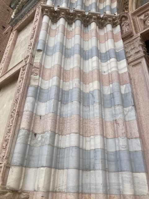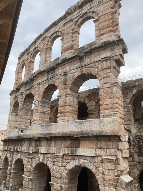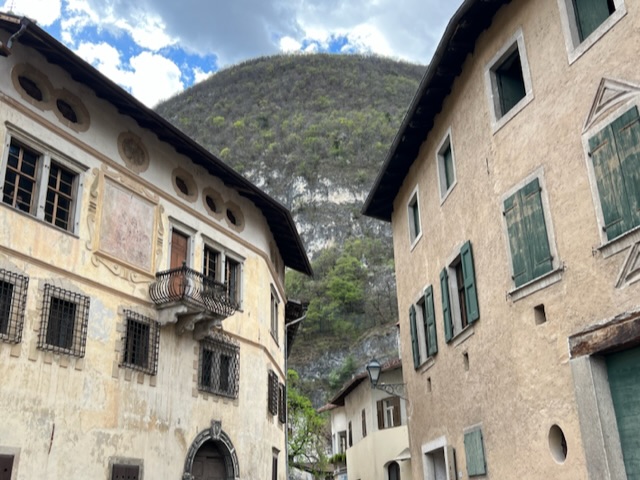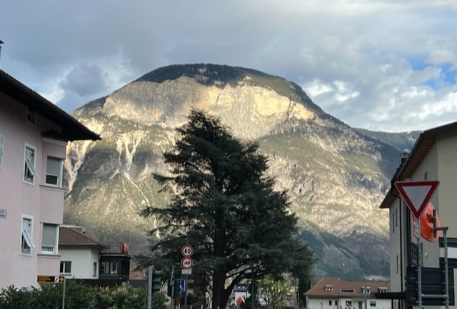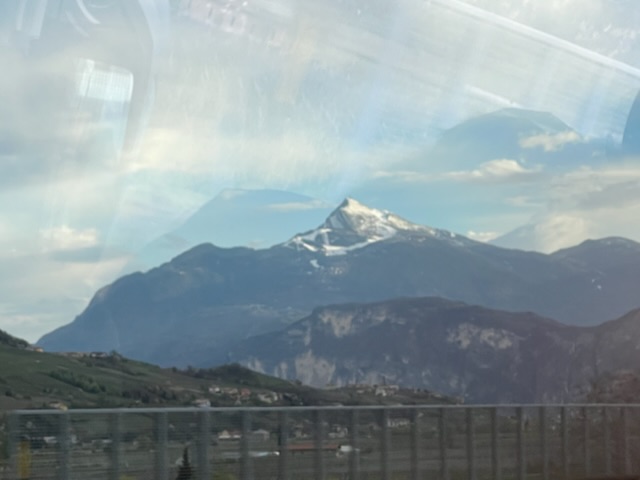 The landscape is very striking as the dolomite mountains rise from the Adige valley, the west slopes catching the bright morning sun, the eastern slopes shining golden in the evening. The bus seemed to glide along the superior north-south motorway between Verona, Rovereto and on past Trento. A great way to travel.