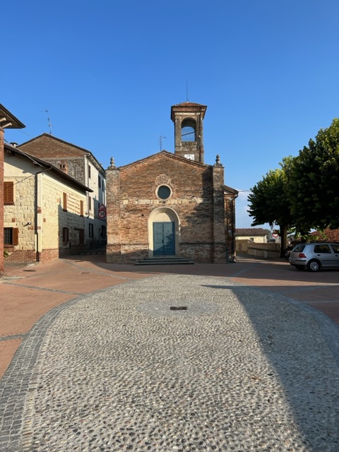 Alice – perhaps the youngest generation – greeted us at the Albergo Castiglione Langhe with a mandatory Prosecco and the news that there are lots of mosquitoes… and we saw several as we checked in. She arranged a booking for supper for us at San Stefano Belbo’s Ristorante Stazione. Its La Notte Gialla festival was underway and traffic was restricted but while I researched rat-run routes in and out of the town, David tracked down not only the house in which Cesare Pavese was born, but also the cemetery in which he is buried. We saw both, and parked at the latter.