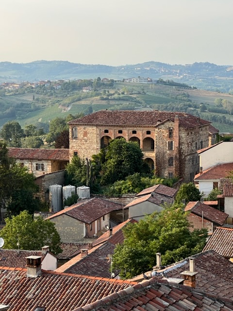 The food was good value; one dish outstanding (the cod), a lot of fritti (deep fried eg the funghi and lamb) and the service quick. The electric hand-held fan cooled us down and discouraged the mosquitoes. A bottle of Grignolino by Braida was excellent, part of which we took back to the hotel to drink in its charming outdoor area where this time the breeze kept the mosquitoes at bay.