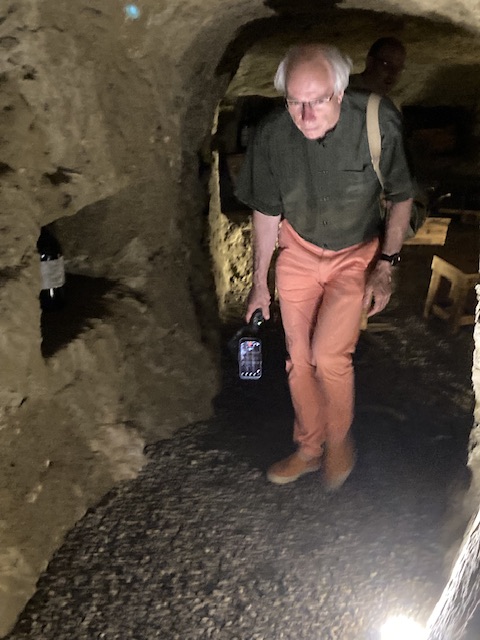 Was spent in pursuit of a suitable Infernot photo for the book! These extraordinary often domestic cellars were routinely dug beneath houses, usually in the summer (when the ground’s lower temperature offered a cool escape from the fierce heat) by the residents simply chipping away at the relatively soft slightly golden calcareous stone, tunnelling to a suitable depth and then carving out small storage spaces, often lined by niches and shelves in the sides of the rock cave. These were used exclusively for wine; other foods needed a drier environment. These are widespread though many have been forgotten or built over.