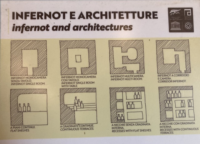 The Maitre-di was excellent, as was the food; the company pretty awkward. Emily, an American intern studying for her Masters in Oenology was struggling with speaking Italian; we discovered as we left that another young woman present was an oenologist from one of the firm’s other estates in the Veneto. Large footed (size 48) Marco was farm manager – but across a number of estates. He tried quite hard to explain and to entertain us, but there was little local pride or close connection with the locality. However, we did see our first Infernot, directly underneath the ristorante.