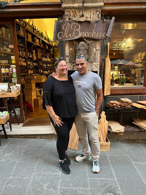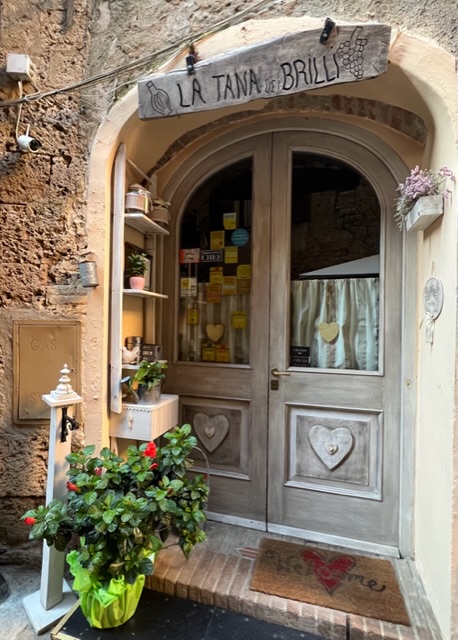 We saw Gian Paolo in the distance, and were greeted warmly at La Tana dei Brilli and at Grassini where we booked supper for Friday and tomorrow nights, before tackling Magdi and Monica – whose enoteca Il Bacchino continues more or less as before with the recent addition of comic Alberto as a waiter.