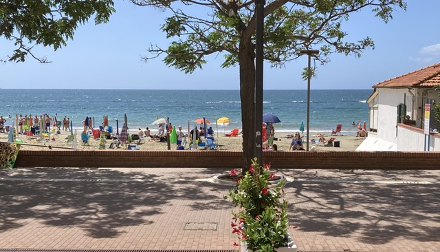Our last full day in Italy was partly spent in Follonica, using the rather limited Sunday bus service which did at least give us time for lunch and a stroll. But first David opted for an early morning walk and experienced an empty, very quiet Massa as he enjoyed an early coffee as the Loggia cafe (in the early days the home of the most efficient wifi in Massa) had opened on the dot of seven o’clock.