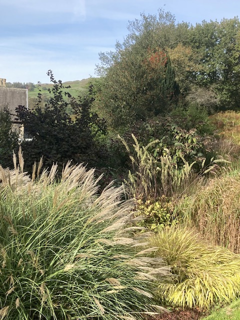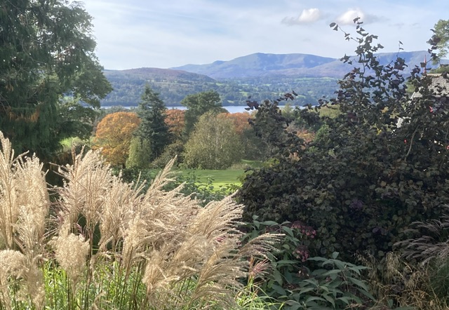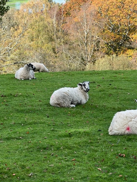 The sun shone on the beautifully maintained beds, and the fells (High Ground) beyond. We had a delightful hour or so in the sun with magnificent views, though the autumn colours were only just beginning to turn. So many sheep!