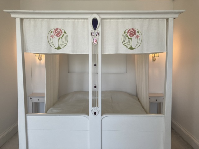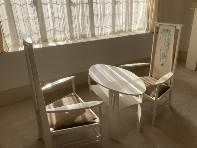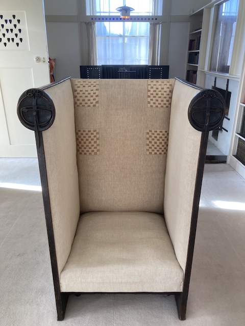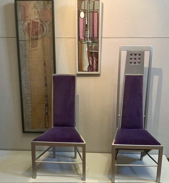 We all owe a huge debt to the Professor of Fine Art, Andrew McClaren Young, who negotiated to rescue and mothball all of its interior furnishings, and pressed for a replica building to be constructed to house it all, in order to convey and preserve the visionary ideas and work of this married couple, Charles Rennie Macintosh (1868 – 1928) and Margaret MacDonald (1864 – 1933), as comprehensively as possible.