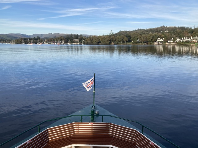 We stepped straight onto a Windermere train, and in no time we were on the 599 bus to Grasmere, where we ate our packed lunch on St Oswald’s church bench close by Wordsworth’s grave. And it was only two o’clock! A pint of the locally brewed bitter in the pub next door helped the iphone hotel research which suggested Bowness was the best resourced settlement. In no time we had a room booked in the newly renovated Ro hotel (formerly the Hydro) and several ideas for supper.