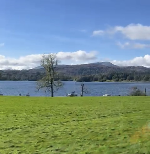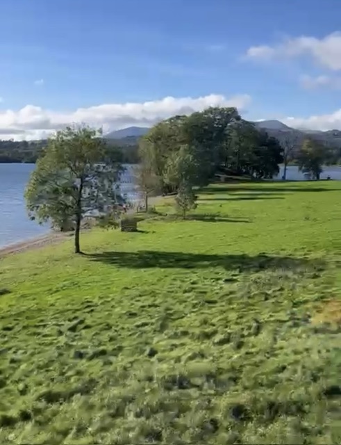 As we left Penrith (whose attraction had faded when my researches revealed that the A592 along Ullswater to Glenridding, Kirkstone and Ambleside was closed during our excursion) we revisited our idea of extending our break to take in the Lakes, and hastily packed up our luggage and ‘alighted’ in bright sunshine at Oxenholme. Hilarious!